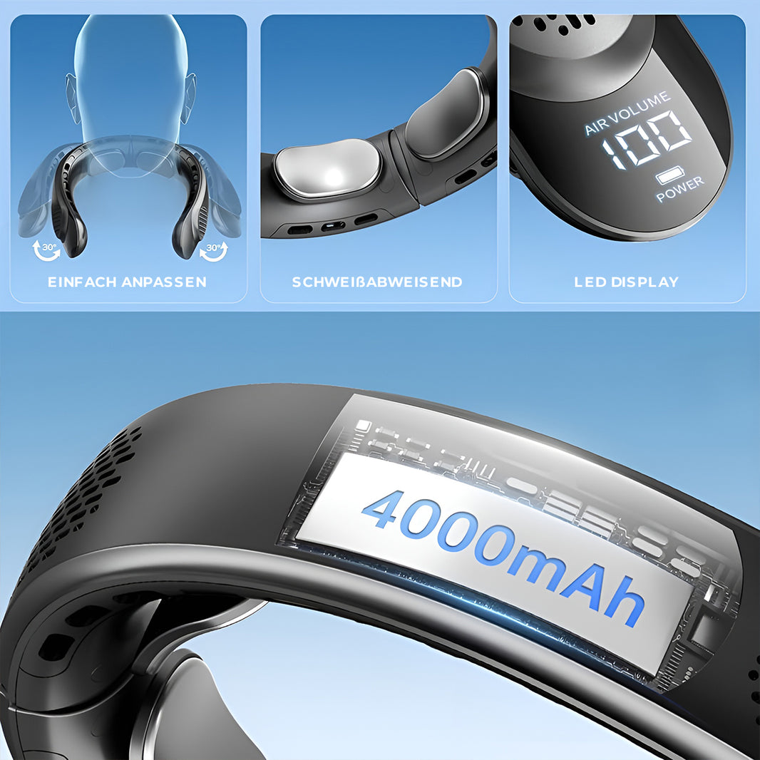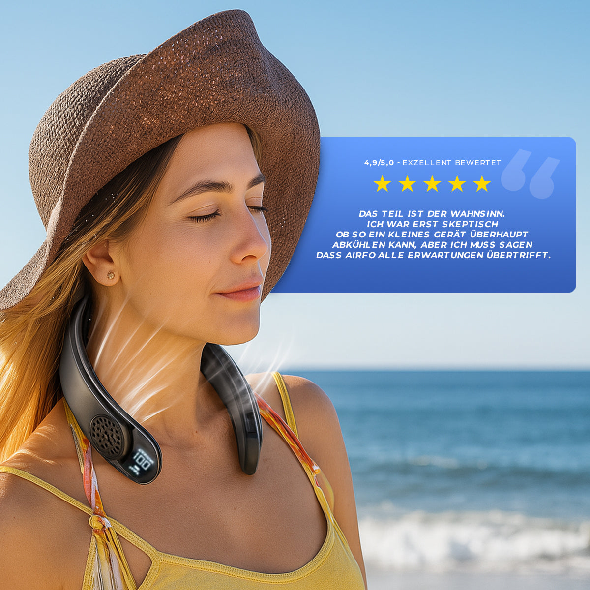 Der Airfo Nackenventilator verbindet modernes Design mit effektiver Kühlung – perfekt für heiße Tage. Im Look stylischer Kopfhörer getragen, liefert er dir 360° Windzirkulation in drei einstellbaren Stufen.
